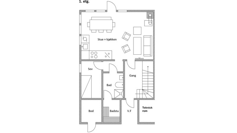 Bad 1: dusch, WC, bastu
