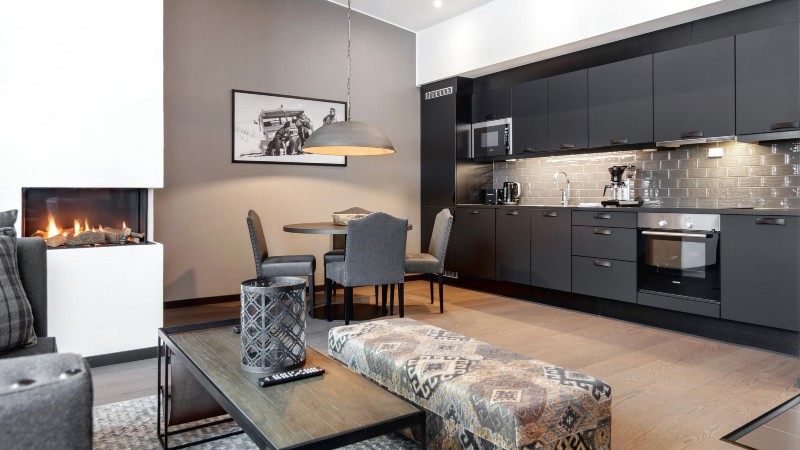 Övrigt: TV. Torkmöjligheter: garderob med element. Lägenheten har öppen gasspis, vilket inga andra lägenheter i Skistar Lodge Suites har. Set med lakan & handduk ingår (även uppbäddning). Skidskåp med skotork finns i huset. Balkong (skottas ej). Hiss finns i huset. Tillgång till elbilsladdare med typ 2-uttag mot avgift.