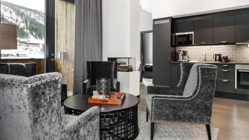 Övrigt: TV. Torkmöjligheter: garderob med element. Lägenheten har öppen gasspis, vilket inga andra lägenheter i Skistar Lodge Suites har. Set med lakan & handduk ingår (även uppbäddning). Skidskåp med skotork finns i huset. Balkong (skottas ej). Hiss finns i huset. Tillgång till elbilsladdare med typ 2-uttag mot avgift.