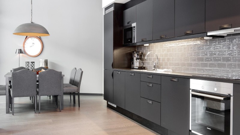 I köket finns bland annat: spis, kylskåp, frys, diskmaskin, micro.