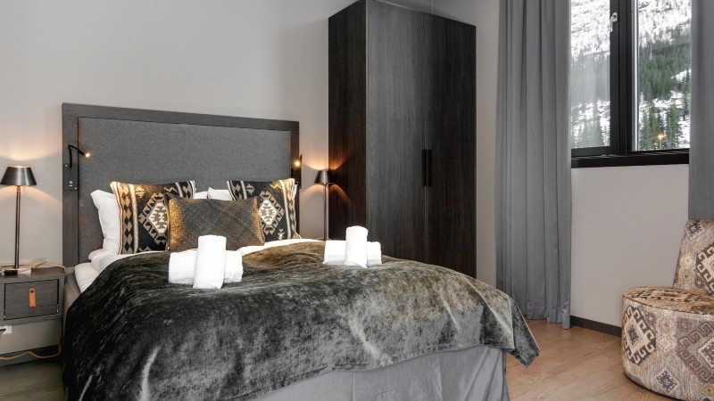 Övrigt: TV. Lägenheten har öppen gasspis, vilket inga andra lägenheter i Skistar Lodge Hemsedal Suite har. Set med lakan & handduk ingår (även uppbäddning). Skidskåp med skotork finns i huset. I lägenheten finns en garderob med element.