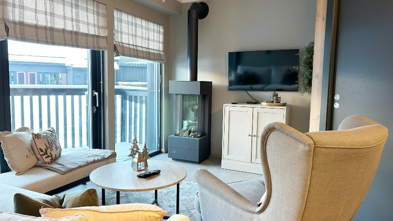 Övrigt: TV, gaseldad öppen spis/kamin. Tvättmaskin. Lägenheten ligger på 1:a våningen. Lägenhetsbyggnaden har hiss, men lägenheten är inte handikappanpassad. Skidförråd, balkong (skottas ej).