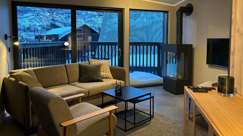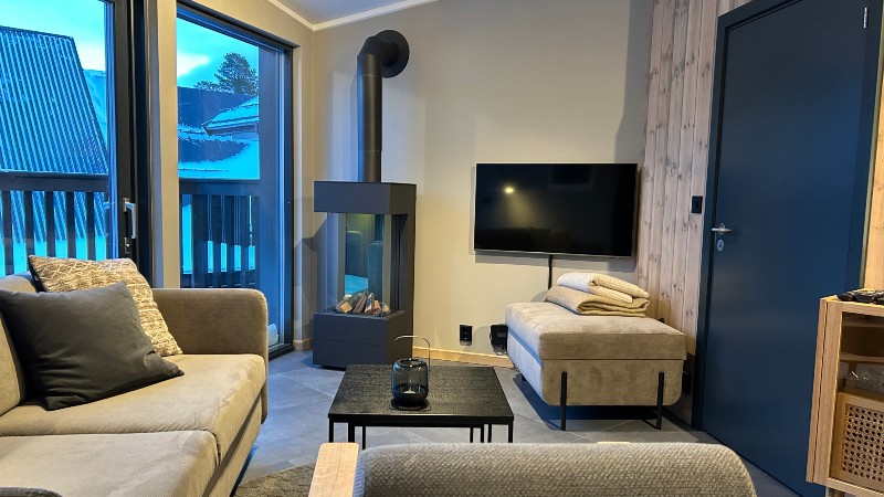 Övrigt: TV, gaseldad öppen spis/kamin. Tvättmaskin, torktumlare, balkong (skottas ej), skidförråd. Lägenhetsbyggnaden har hiss, men lägenheten är inte handikappanpassad