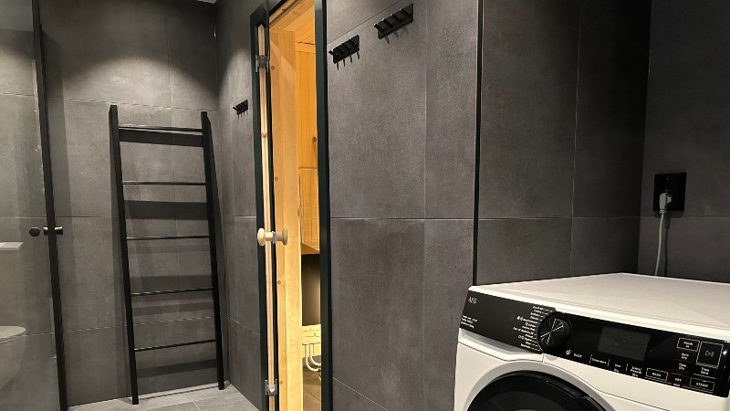 Badrum: 1 badrum med dusch, WC & bastu